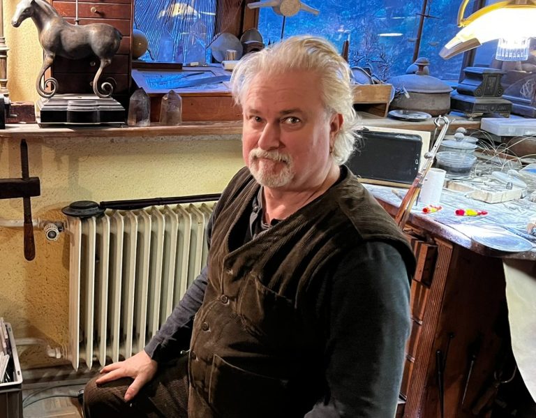 Seit ich mich erinnern kann, interessiere ich mich für Geschichte und die Materialien, die heute weitestgehend durch Kunststoffe ersetzt worden sind: Knochen, Geweih und Bein. Der Kontrast zwischen Weiß und Schwarz, gepaart mit Handwerkskunst übt auf mich auch nach 30 Jahren immer wieder eine große Faszination aus. Ich arbeite hauptberuflich seit 30 Jahren als Goldschmied, Gürtler und Beinschnitzer. Nach mehreren Aufenthalten im Ausland und Arbeiten für Museen, ist das Erschaffen von historischen Replikaten, nach wie vor eine große Leidenschaft.